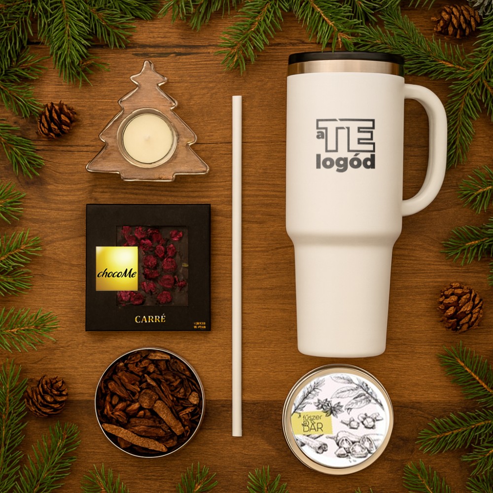 Illatos és ízletes válogatás, amely a téli fűszerek varázsát hozza el a mindennapokba. A csomag tartalma: duplafalú bögre szívószállal, 1200 ml (10080101), fenyőfa alakú üveg mécsestartó (4896-32), illatos forraltbor fűszerkeverék, 50 g (G0057), Chocome táblacsoki, 50 g (GCM0015) Csomagolási lehetőségekről érdeklődj ügyfélmenedzserednél! A kép illusztráció. A kínálatunkban szereplő termékek igény szerint kombinálhatók. A csomagot rendelés esetén állítjuk össze. Várható szállítási határidő: kb. 2 hét. A termékek emblémázását és csomagolását nem tartalmazza a csomag ára. A csomagban szereplő élelmiszerek csak csomag részeként rendelhetők.