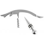 Négy darabos boroskészlet tartalma: palackdugó, dugóhúzó, cseppfogó és egy üvegdugó kiöntővel. Csomagolása ajándékdoboz. Rozsdamentes acél és ABS BPA-mentes műanyag.