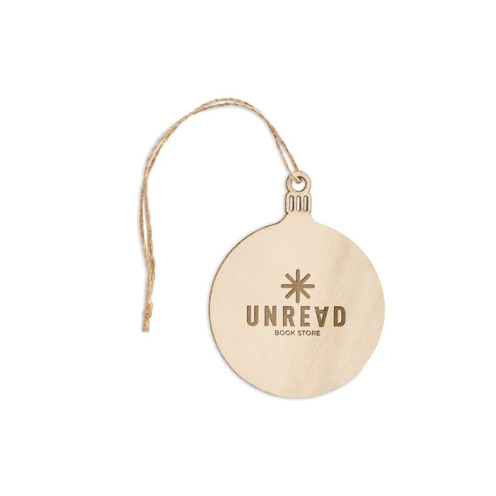 MDF fából készült kör alakú karácsonyfadísz, juta zsinórral.