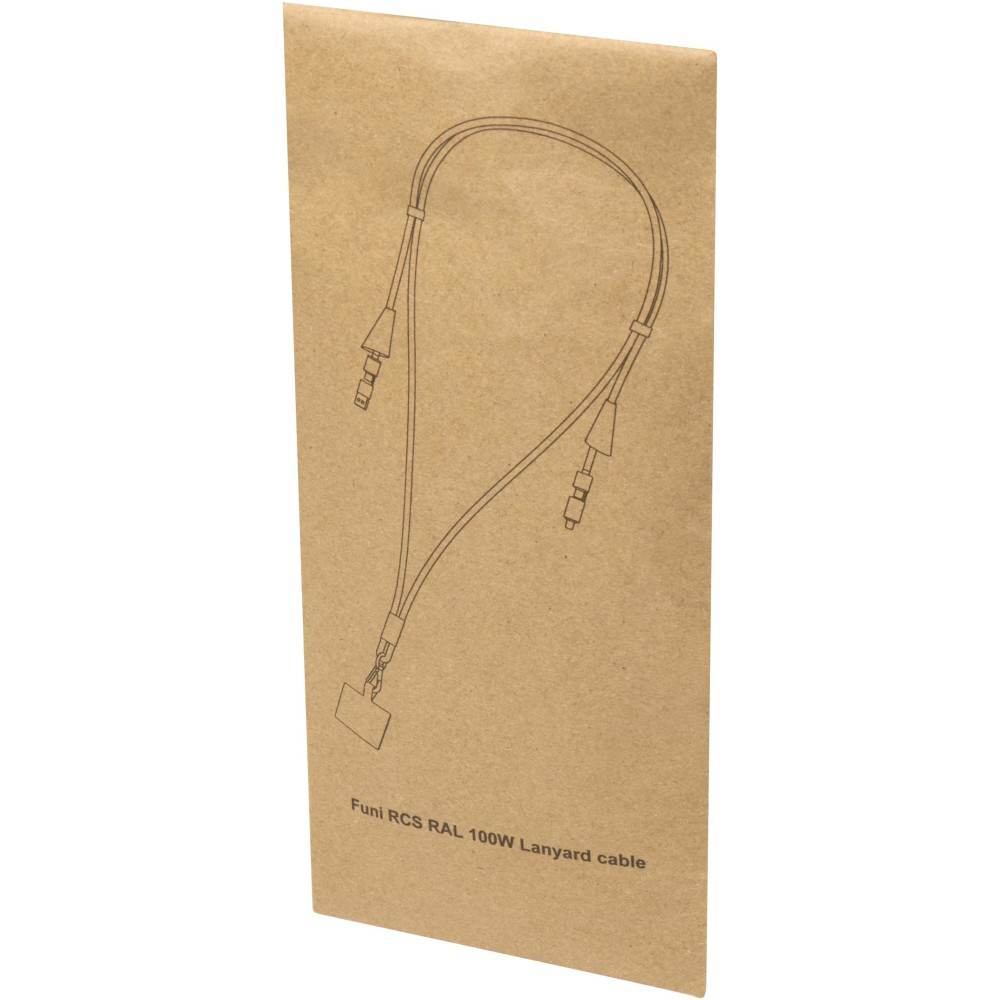A Funi egy stílusos és praktikus nyakpánt, amely újrahasznosított műanyagból készült. Beépített, 100W gyorstöltést és adatátvitelt támogató 5 az 1-ben kábellel rendelkezik, Type-C és USB-A bemeneti csatlakozókkal, valamint Type-C, Lightning és microUSB kimenettel. Ez a kábel elég erős ahhoz, hogy a legtöbb laptopot, tabletet és okostelefont gyorsan feltöltse. Kompatibilis a CarPlay és Android Auto rendszerekkel, így ideális utazáshoz, munkához vagy mindennapi használatra.