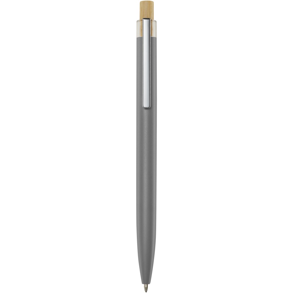 A Nooshin golyóstoll újrahasznosított alumíniumból készül, ami kevesebb energiát igényel, mint az alumínium nyersanyagból történő előállítása. Emellett csökkenti a hulladéklerakókba kerülő hulladék mennyiségét és hozzájárul a természeti erőforrások megőrzéséhez, amelynek célja az üvegházhatású gázok kibocsátásának csökkentése. A nyomógomb bambuszból készült. Tollbetét színe: fekete. Íráshossz: 800 méter. Tollhegy mérete: 1,00 mm.