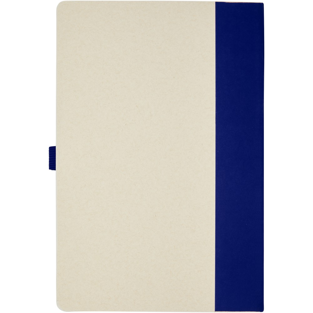 A5 méretű füzet és golyóstoll készlet. A jegyzetfüzet 80 vonalas lapot (80 g/m2) tartalmaz, amelyek újrahasznosított tejes kartondobozokból készülnek (akár 70%), színes papírgerinccel és egy tollhurokkal. A tollhurokban egy nyomógombos golyóstoll található a jegyzetfüzet színéhez illő színben. A toll teste ugyanabból az újrahasznosított anyagból készült, a gomb, a klipsz és a hegy pedig színes PLA műanyagból készült. A toll fekete tollbetéttel érkezik. A használt tejesdobozokat összegyűjtik, válogatják, feldolgozzák és papírrá alakítják, így a hulladékból hasznos termék készül.