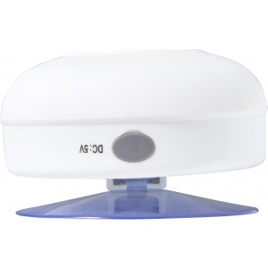 Vízálló Bluetooth hangszóró. Tökéletes megoldás bejövő hívások fogadására kéz használata nélkül vagy zenét hallgatni a zuhany alatt. Sima felületeken tapadókoronggal rögzíthető. Műanyag.