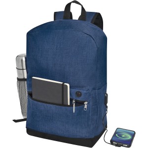 Laptop hátizsák nagy cipzáras fő rekesszel, párnázott 15,6 -os laptop tokkal és egy elülső cipzáras zsebbel, amely gyors hozzáférést biztosít a mobil eszközökhöz. USB-csatlakozóval rendelkezik, beleértve az USB-A kábelt 1 férfi és 1 női csatlakozóval. Kényelmes párnázott vállpántok, fogantyú, és egy hálós zseb palacknak. A tényleges termék színében kisebb eltérések lehetnek a szövetfestékek, szövések és a nyomtatás jellege miatt. 300D poliészter, 600D poliészter.