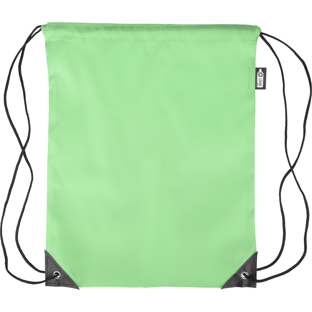 Tornazsák 210D poliészter anyagból, fekete PU sarokerősítéssel az elején, és belső varrással. Fekete nylon húzózsinórral, egy rekesszel. Űrtartalom: 5 liter, teherbíró képesség: 7 kg. rPET címkét tartalmaz.