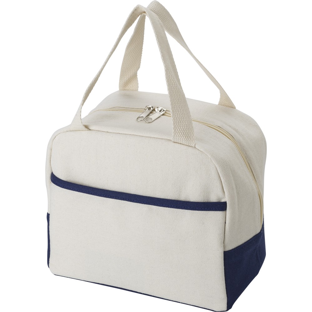 Pamut hűtőtáska, sötétkék/natúr