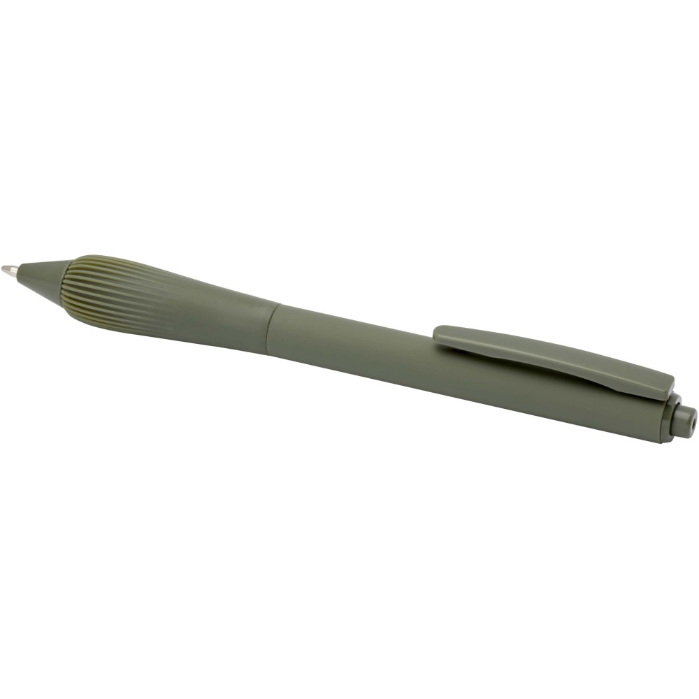 Újrahasznosított műanyag golyóstoll gumírozott tolltesttel és TPR anyagból készült fogórésszel. Fekete tollbetéttel. Írási hossz: 1000 méter. Hegyméret: 1,0 mm.