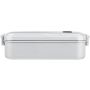 Ételdoboz egy belső elválasztóval. A fedélen lévő zárószerkezet telefontartóként is használható. Fedél nélkül mikrózható, csak a doboz. Űrtartalom: 850 ml. PP BPA-mentes műanyag.