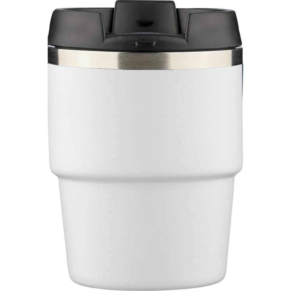 Újrahasznosított rozsdamentes acélból készült, vákuumszigetelésű bögre (175 ml) duplafalú kialakítással és porfestett felülettel, PP csavaros fedéllel. A pohártesten lézergravírozott recycled (újrahasznosított) alapanyagra utaló logó található. Kompakt kialakítása miatt a legtöbb kávégépbe illeszkedik, darabonként barna kartondobozba csomagolva szállítjuk.
