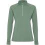 Női hosszúujjú technikai raglán pulóver. Gallér fordított félcipzárral, fényvisszaverő részletekkel. Erősített varrások. Kézelő hüvelykujj nyílással. Fényvisszaverő részletek a háton. A hátul enyhén hosszított fazon. Meleg, bolyhos belső anyag.