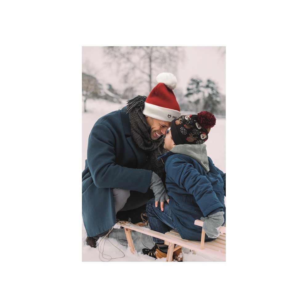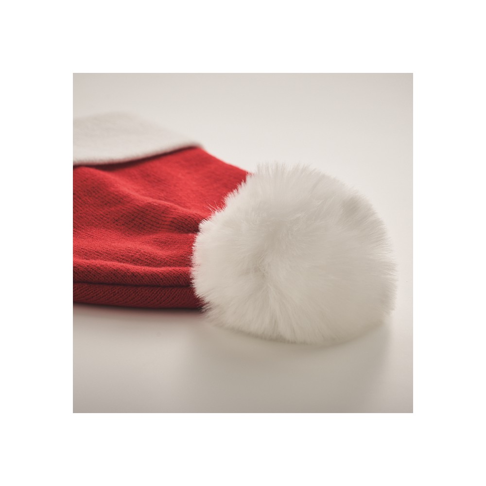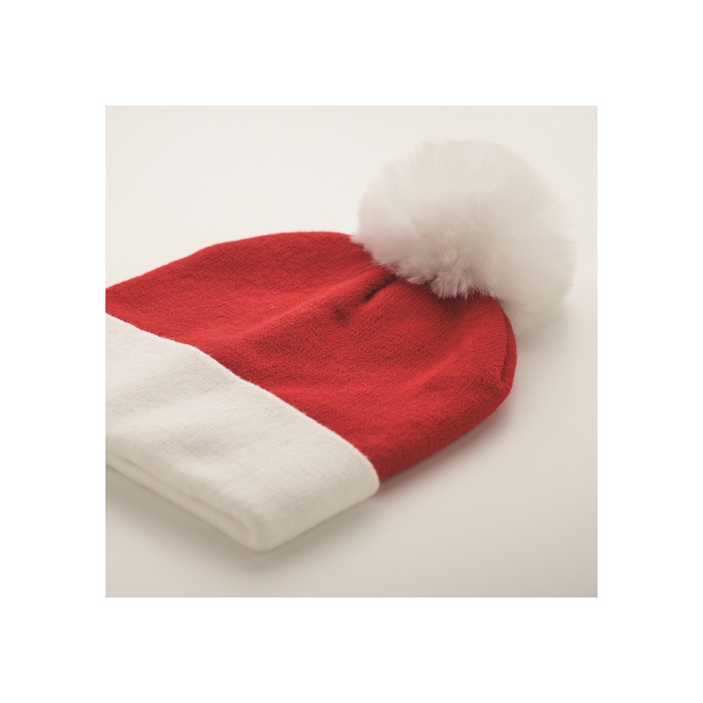 Karácsonyi kötött sapka mandzsettás aljjal, bojttal, rugalmas akril anyagból.