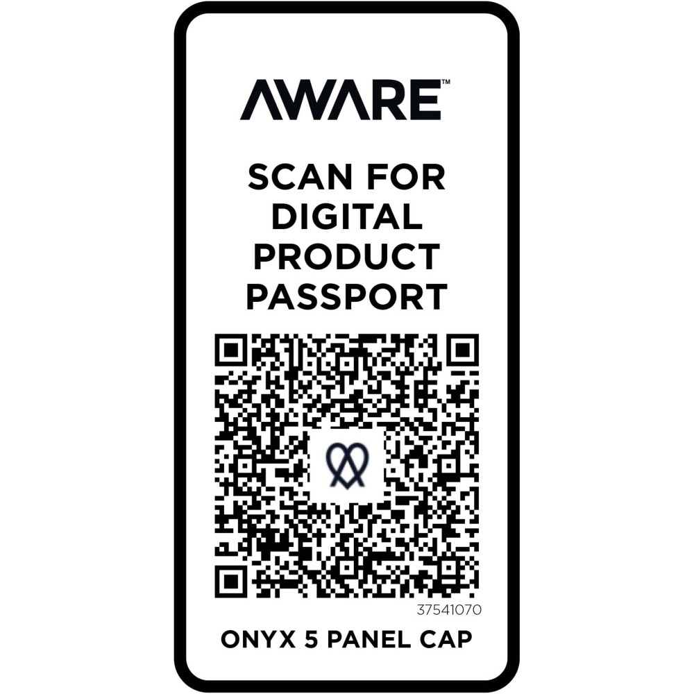 Az Onyx 5 paneles sapka 70%-ban újrahasznosított pamutból és 30%-ban újrahasznosított poliészterből készült. Úgy tervezték, hogy 58 cm-es fejkörfogatnál kényelmesen illeszkedjen, a fémcsatos záródás pedig könnyű és biztonságos beállítást tesz lehetővé. A sapka Cyclo újrahasznosított szálakat tartalmaz, ahol előválogatott hulladékot használnak, amely meghatározza a fonal színét. Ezek a szálak nem csak a szűz erőforrások iránti igényt csökkentik, hanem a körkörös élet iránti elkötelezettséget is mutatják, megtestesítve a hulladékcsökkentés lényegét. Minden sapkához egy Aware nyomjelző is tartozik. Ez az innovatív funkció lehetővé teszi a felhasználók számára, hogy egy QR-kód segítségével nyomon követhessék a termék eredetét és útját, növelve az ellátási lánc átláthatóságát, és elősegítve a termék és a gyártási folyamat közötti szorosabb kapcsolatot.
