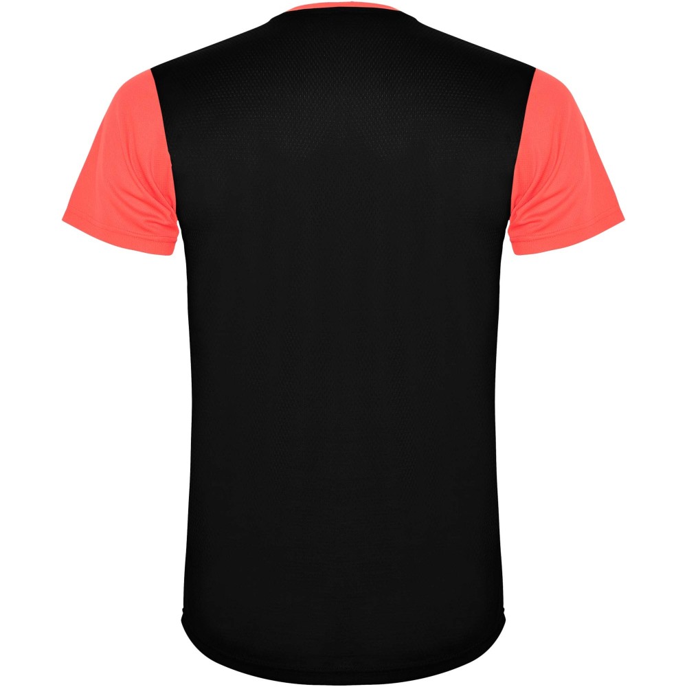 Roly Detroit rövid ujjú uniszex sportpóló, fluor coral, solid black