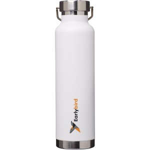 Thor duplafalú vákumos palack. Belső fala réz, ennek köszönhetően 48 órás hideg- és 12 órás melegtartási képességgel rendelkezik. Ez a kialakítás megakadályozza a kondenzációt a palack külső falán. A termoszhoz csavaros, rozsdamentes acél kupak tartozik. Széles kiöntő nyílással rendelkezik, amely akár jégkockák behelyezésére is alkalmas. Szivárgásmentes. Szénsavas italokkal nem használható. Mosogatógépben nem mosható és mikrohullámú sütőben történő melegítésre nem alkalmas. Űrtartalom: 650 ml. Csomagolása Avenue díszdoboz. Rozsdamentes acél.