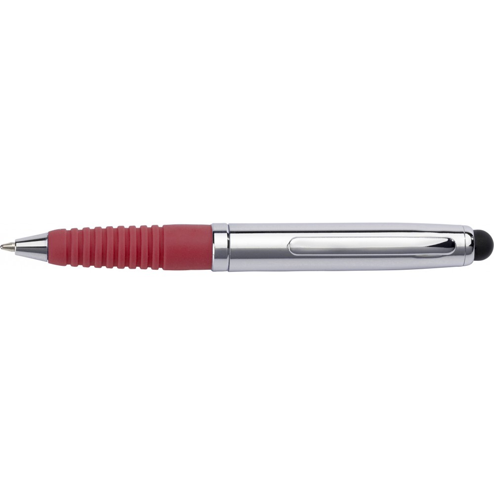 Kisméretű acél golyóstoll érintővel, színes szilikon gyűrűvel, kék tollbetéttel.