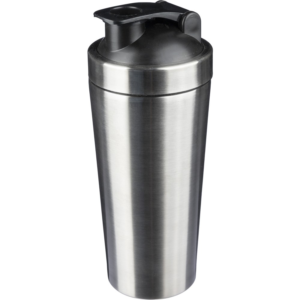 Újraacél sportpalack és shaker, szimplafalú, 750 ml, ezüst