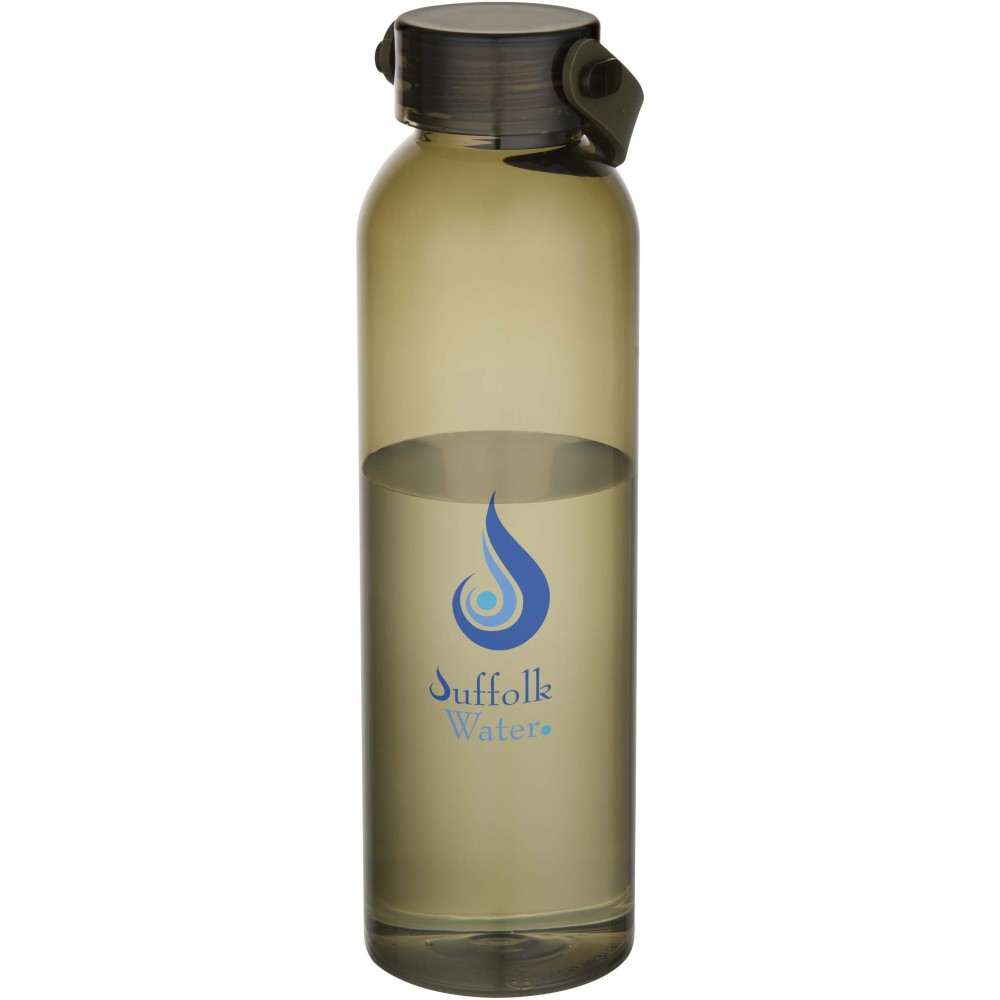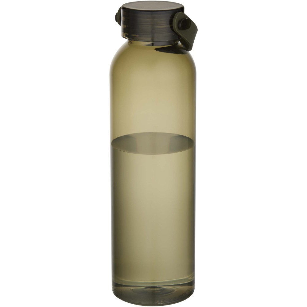 RCS tanúsítvánnyal rendelkező RPET-ből készült kulacs, praktikus szilikon hordozófüllel. Megfelel az EFSA által jóváhagyott PET-újrahasznosítási eljárásnak. Űrtartalom: 630 ml.